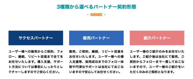 パートナーとして早期に立ち上がりができるよう、月1回の定期サポートや商談への同席など販売支援から導入まで徹底的にサポートします。さらに初期費用は0円、月額料金も19,800円~と安価であるため販売・提案しやすいことも採用係長の特徴です。