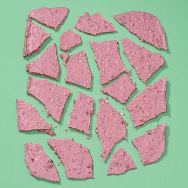ローストしたアーモンドとラズベリーグレインのカリっとした食感と、フローラルでフルーティーなバラの甘い風味が織りなすコントラストが特徴。ローズとラズベリーのアロマがミルキーなホワイトチョコレートに爽やかなヒントを与え、Brutto&Buonoのクラシックな雰囲気に、見た目の面でも味の面でも意外性をもたらします。