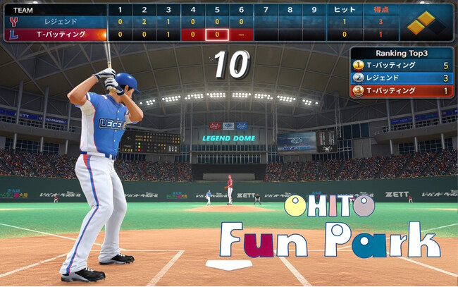 エアデジタル株式会社(本社:埼玉県さいたま市、代表取締役:前田相伯、以下「エアデジタル」)は、体験型シミュレーション野球システムの一つである「レジェンドT-バッティング」が、静岡県伊豆の国市大仁にある、リニューアルオープンのバーチャルスポーツパーク「大仁ファンパーク(OHITO Fun Park)」にて、超大型スクリーン(幅5.5m×高さ3.6m)での稼働開始をお知らせいたします。