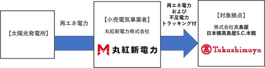 株式会社高島屋(本社:大阪市中央区、代表取締役社長:村田善郎、以下「高島屋」)と、丸紅株式会社の連結子会社である丸紅新電力株式会社(本社:東京都千代田区、代表取締役社長:鈴木 敦士、以下「丸紅新電力」)は、日本橋高島屋S.C.本館において、太陽光発電所由来の再生可能エネルギー(以下「再エネ」)電力の供給に向けたオフサイトPPA(※1)を活用した取り組みに関する契約を締結しました。今後、再エネ電力の供給を順次開始する予定です。