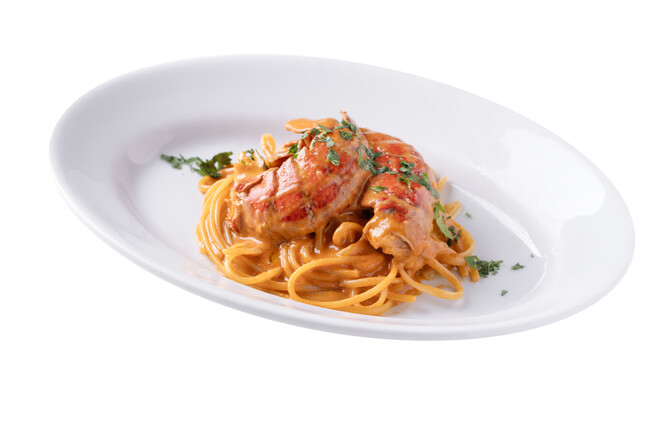 ■贅沢にオマール海老を使った濃厚なビスク、オマール海⽼のトマトクリームパスタ