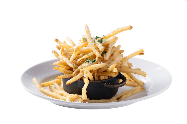 細くてサクサクとした食感が美味しいフレンチフライに、濃厚なトリュフの風味とチーズの旨味を加え、病みつきになる味に。どんなメイン料理にも、付け合わせの相性抜群の一品です。レストランでは1日150個注文が入る大人気の一品です。