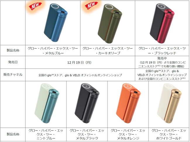 BATジャパン(本社:東京都港区赤坂、社長:ジェームズ 山中、正式社名:ブリティッシュ・アメリカン・タバコ・ジャパン合同会社)は、新世代の加熱式たばこ専用デバイス「glo(TM) hyper X2(グロー・ハイパー・エックス・ツー)」から、「グロー・ハイパー・エックス・ツー・メタルブルー」「グロー・ハイパー・エックス・ツー・カーキオリーブ」の2種類の新カラーデバイスを全国のglo(TM)ストア、glo & VELOオフィシャルオンラインショップで2022年12月19日(月)より発売いたします。