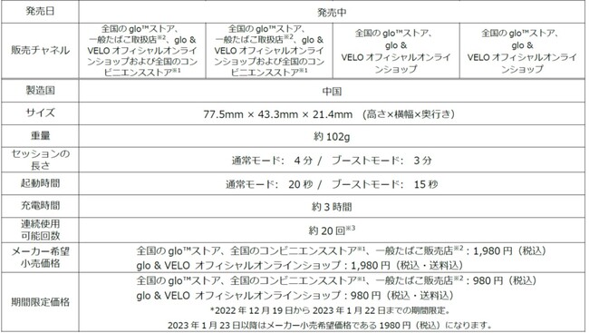 さらに、2022年12月19日から2023年1月22日までの期間限定で、「glo(TM) hyper X2」7色全てを980円(税込)(※2)にてお求めいただけます。