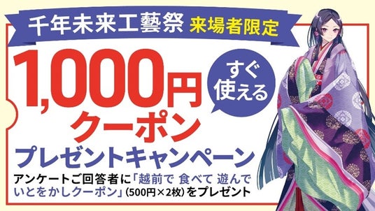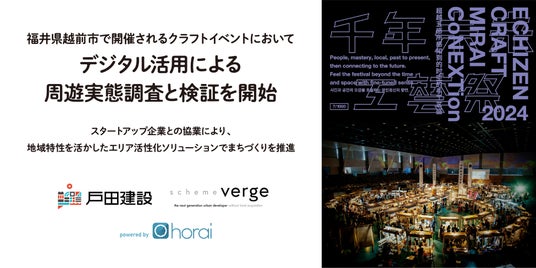 戸田建設(株)(本社:東京都中央区、社長:大谷 清介)は、scheme verge(株)(本社:東京都文京区、代表取締役CEO:嶂南 達貴)と協業し、北陸新幹線 越前たけふ駅周辺エリアの活性化を目指したまちづくりを推進しております。その一環として、モノづくりのまち越前市から様々なクラフトの魅力を伝えるイベント『千年未来工藝祭※1』において、アンケート調査およびデジタルクーポンを活用した周遊実態調査と検証(以下、本調査)を行います。