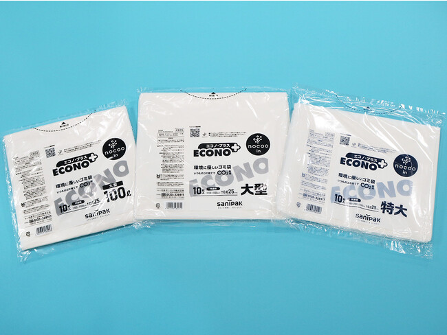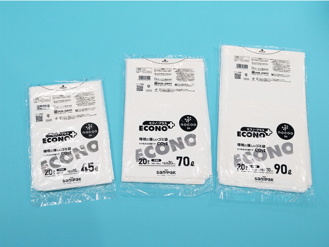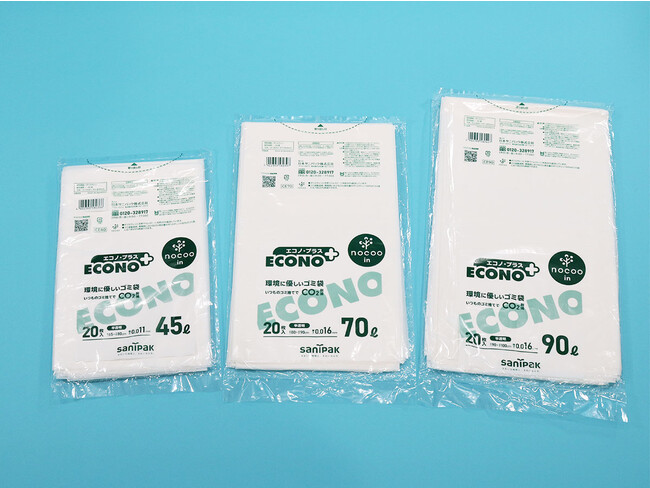 日本サニパック株式会社(本社:東京都渋谷区、代表取締役社長:井上充治 以下、サニパック)は、環境配慮型ゴミ袋「nocoo(ノクー)」の技術を採用した「エコノプラス nocoo in(ノクーイン)」14商品を12月15日より発売しました。45~300L相当と幅広いサイズを取り揃えたゴミ袋です。