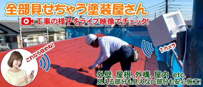 ――外壁や屋根の塗装では下地処理や塗装回数による適切な作業工程が必要ですが、現場が見えないと手抜きをする業者や不安感を抱くお客様がいます。地元密着の信頼される塗装店を目指す当社は、ATOM Camを現場に設置して技術サービスの見える化を行いました。施工の様子を施主様のスマホからライブ映像で見られるので安心してもらえます。当社にとっても都度写真を撮ると経費も時間もかかりますが、画像を直接お見せできるため、数万円の経費削減にもなります。カメラの設置は何よりお客様への安心アピールになっているので、HPの写真にもATOM Camを目立つように載せています。