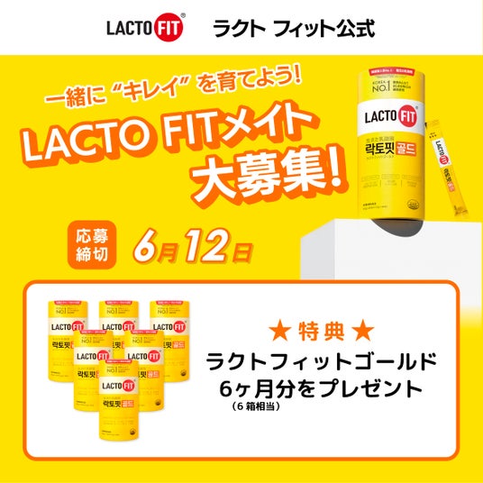 選ばれた方にはラクトフィットゴールド 6ヶ月分をプレゼントし、実際にご愛用いただきながら商品の魅力や実感した変化をSNS等でPRしていただきます。