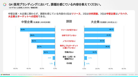 ~採用ブランディングにおける課題は中堅企業・大企業ともに、1位 「リソースが足りない」、2位 「分析ができていない」という結果に~