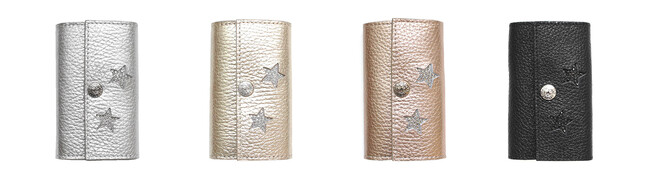 バッグに付属するスターチャームの裏面の素材には、スターの型押し模様が入ったイタリアンレザーを採用しました。織姫と彦星の恋物語の舞台である天の川のような、沢山の星が散りばめられたレザーです。キーケースにも、上品に煌めくイタリアンレザーを採用しました。