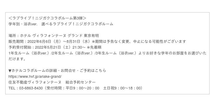 「ホテル ヴィラフォンテーヌ グランド 東京有明」のコラボルームにも新プランが登場!夏らしい浴衣姿のニジガクメンバーがお出迎えするコラボルームを学年別でご用意いたします。