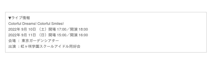 東京ガーデンシアターでライブ!Colorful Dreams! Colorful Smiles!公演情報