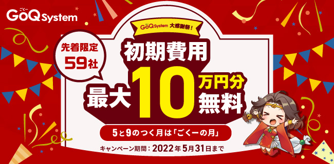 株式会社GoQSystem(本社:東京都中央区、代表:藤本卓治、以下「当社」)が開発・提供する、クラウド型受注管理システム「GoQSystem」は2022年4月より期間限定で、最大10万円分が無料になるキャンペーンを実施いたします。