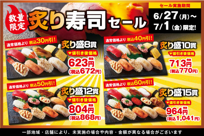 持ち帰り寿し店の「小僧寿し」「茶月」を運営する株式会社小僧寿し(本社:東京都中央区 代表取締役社長 良本 宣之)は、持ち帰り寿し店「小僧寿し」にて、6月27日(月)~7月1日(金)の平日限定で、「炙り寿司セール」を開催いたします。