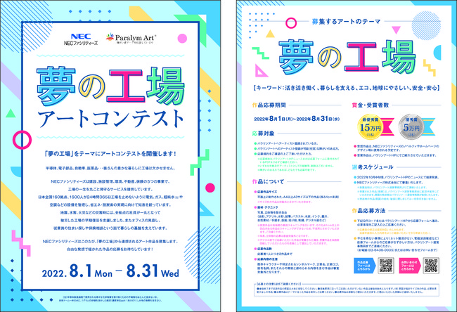 一般社団法人 障がい者自立推進機構 パラリンアート運営事務局(所在地 : 東京都港区、代表理事 : 中井 亮 以下、パラリンアート)はゴールドパートナー契約を締結した、NECファシリティーズ株式会社(所在地 : 東京都港区、代表取締役執行役員社長:松下 裕)とともに、障がい者を対象にしたアートコンテストを開催いたします。