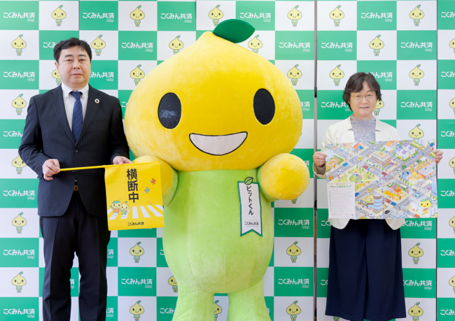 共済商品の利用を社会課題の解決にも繋げるため、2020年6月から通年の取り組みとして、「マイカー共済」見積もり1件につき1本の横断旗を全国に寄贈しています。