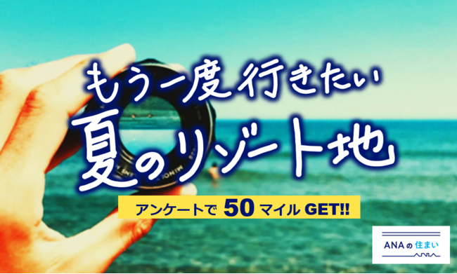 ANAファシリティーズ株式会社(本社:東京都中央区、代表取締役社長:丹治康夫)が運営する、マイルがたまる不動産サイト「ANAの住まい」では、ANAユーザーの方を対象に、「もう一度行きたい 夏のリゾート地」アンケートを実施いたします。先着10,000名様に50マイルをプレゼント。回答が10,000人に到達した時点で、回答を締め切りますので、お早めにご回答ください。