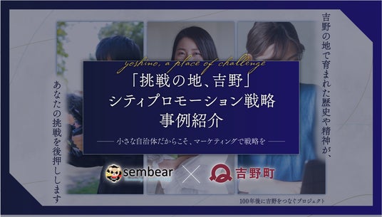 sembear合同会社(本社:東京都渋谷区/CEO:治田耕太郎)は、吉野町の新たなシティプロモーション戦略「挑戦の地、吉野」策定支援事例として戦略構築の課題や背景などご紹介した記事を公開します!