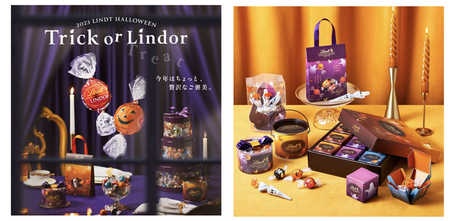 リンツから、“贈り合うご褒美”をテーマにした『ハロウィンコレクション 2023』が登場。今年はコロナが明けて初のハロウィン。『Trick or Lindor (Treat)』のメッセージと共に、ちょっと贅沢なご褒美を家族や友人と贈り合ったりシェアできて、気分の上がる新商品をラインナップいたしました。ひそやかで華やかなハロウィンパーティを表現した期間限定パッケージでお届けいたします。