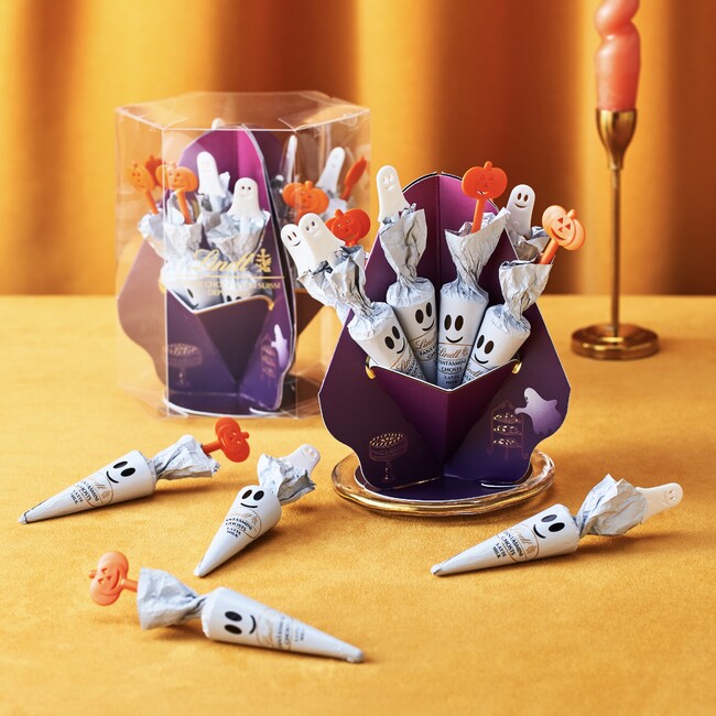 「ハロウィン」は、ミルクチョコレートのシェルの中に、なめらかなミルクチョコレートのフィリングを詰め込んだリンドールを、愉快なパンプキンの包みでラッピング。「ゴースト」は、ミルクチョコレートのシェルにホワイトチョコレートのフィリングを詰め込んだリンドールを、かわいらしいゴーストの包みでラッピングしました。