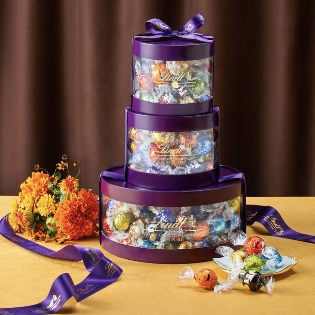 ハロウィンパーティーで大人数で集まるシーンや、学校や職場で配るシーンに。みんなでシェアしたくなる、リンツの一番人気商品『リンドール』がたっぷり入った大容量のギフトボックス。「ミルク」「ダーク」「ホワイト」といった王道フレーバーから、期間限定フレーバーまでバランスよくアソートしました。用途によって3つのサイズからお選びいただけます。