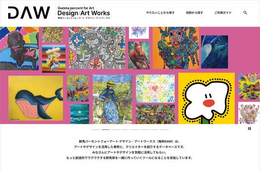 株式会社GK京都(京都府京都市 代表取締役社長 麻田風児)は、群馬県が掲げる「群馬パーセントフォーアート」推進条例を実現するプロジェクトとして、デザインやアートの活用事例を掲載したデータベース「群馬パーセントフォーアート デザイン/アートワークス(略称:DAW)」の設計・構築を担いました。構想立案、事例収集、システム設計、デザインまでを一貫して手がけることで、地域や社会の現場で新たな価値を生み出す人材と、課題やニーズを持つ側との接点を、使いやすく機能するしくみとして形にしました。同データベースは2025年6月30日より、下記リンクよりどなたでも無料で利用することができます。