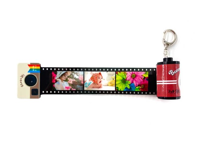 ▲ロールフィルム型キーホルダーは思い出に残るユニークなグッズ・贈り物としておすすめ