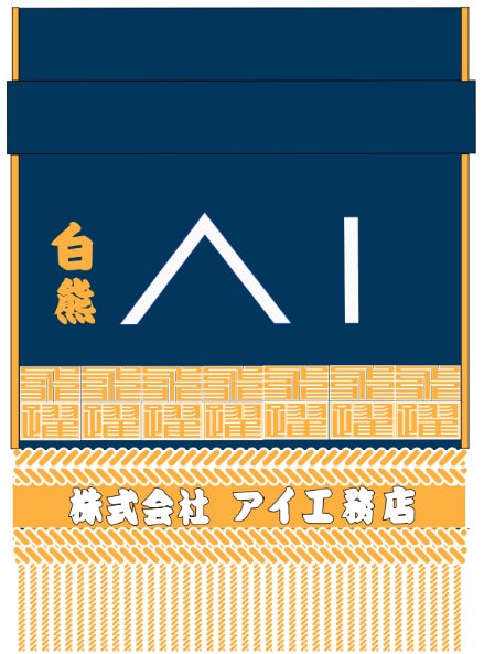 ■白熊関 化粧廻し デザイン意図白熊関に、十両から幕内に早く昇進いただきたいという願いを込め、「大の里関」と同じデザインの化粧廻しを作成しました。「大の里関」は 、この化粧廻しを着けて土俵入りした日の勝率が一番高いとのことで、白熊関にも同様にこの化粧廻しを着けて土俵入りしていただき、勝ち星を獲得して欲しいという願いを込め、「飛躍」という文字も入れ込みました。