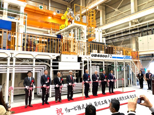 型締力6,500トンダイカストマシン前でのテープカット