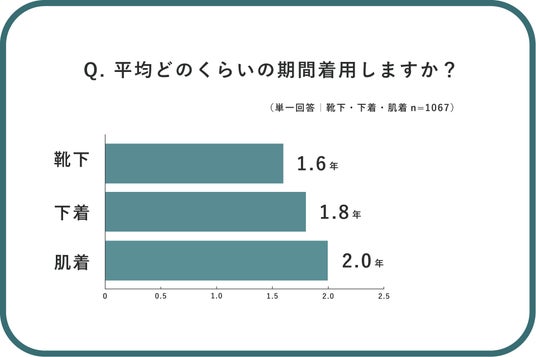 ● 平均着用期間は靴下で1.6年、下着で1.8年、肌着で2年