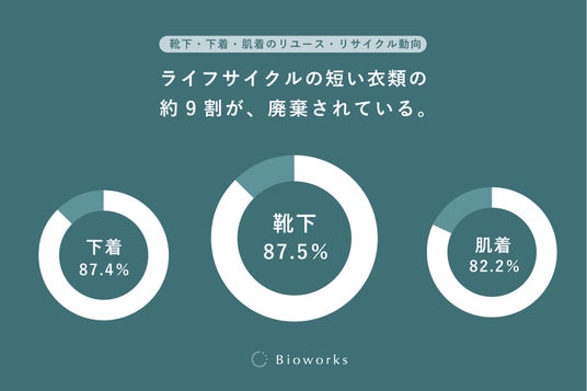 Bioworks株式会社(本社:京都府相楽郡、代表取締役社長CEO:坂本孝治、以下「Bioworks」)は、衣類の中でもライフサイクルの短い靴下・下着(パンツ・ブラ・ショーツなど)・肌着(衣服の下に着用するインナーウェアなど)に焦点を当て、消費実態および廃棄状況に関する消費者調査を実施しました。