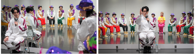 「体のケアの方法や、カッコよく踊るコツを教えてください。」という質問があがると、TETSUYA氏は「踊る前後のケアも大切です。食事や睡眠、ストレッチなど今までの経験値で自分に合っているものを選択し、ルーティーン化することをしています。またカッコよく踊るには平面で躍らず、奥行きのある3Dを意識すると魅力的なダンスに見えます。」と簡単なステップなどの実演を交えながら、チームの皆さんにアドバイスしました。