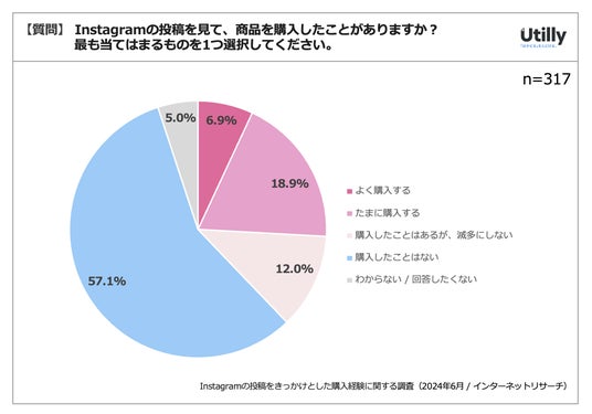 Q.Instagramの投稿を見て、商品を購入したことがありますか?最も当てはまるものを1つ選択してください。