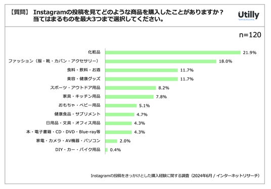 Q.Instagramの投稿を見てどのような商品を購入したことがありますか?当てはまるものを最大3つまで選択してください。