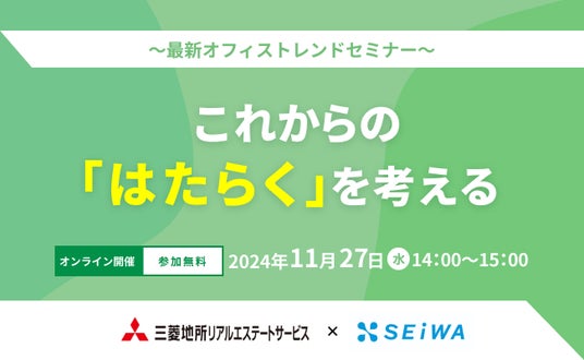 株式会社清和ビジネス(本社:東京都中央区 代表取締役:勝本 浩史)は、11月27日(水)にオフィス移転を検討中の経営者、総務・経営企画部門の担当者向けに、現在のオフィス市況、オフィストレンドを解説するオンラインセミナーを三菱地所リアルエステートサービス株式会社(本社:東京都千代田区 代表取締役:湯浅 哲生)と開催いたします。開催にあたり、12月4日(水)から12月11日(水)までアーカイブ配信を実施いたします。