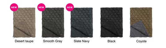 BROOKLYN OUTDOOR COMPANY は、以前より販売している人気商品「エコダウン サーマルシェルパブランケット」をリニューアルし、暖かさをさらに向上させました。あわせて、定番カラーのBlack、Coyoteに加え、新たに3色の新色「Desert Taupe」「Smooth Gray」「Slate Navy」を追加いたします。