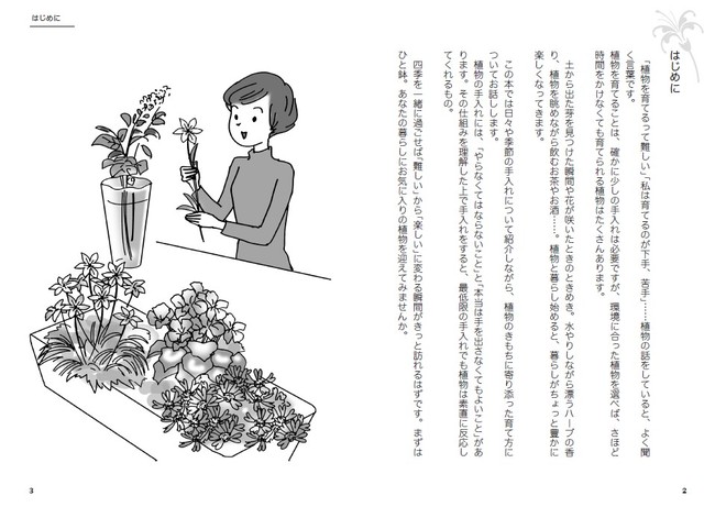 本書では現在は植物に関する記事の提案やライティングを行っているフラワーコーディネーターの金子 三保子が読者に語りかけるように植物の気持ち(育て方)を解説しています。