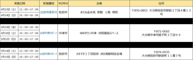 ※開催場所の調整状況や新型コロナウィルスの感染状況等により、「出張申請受付」及び「出張申請サポート」の開催を中止・延期、または実施内容が変更となる可能性がございます。