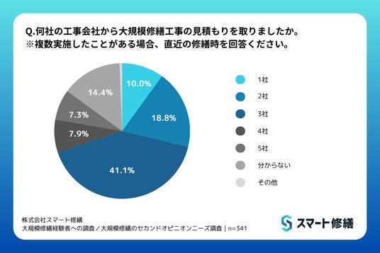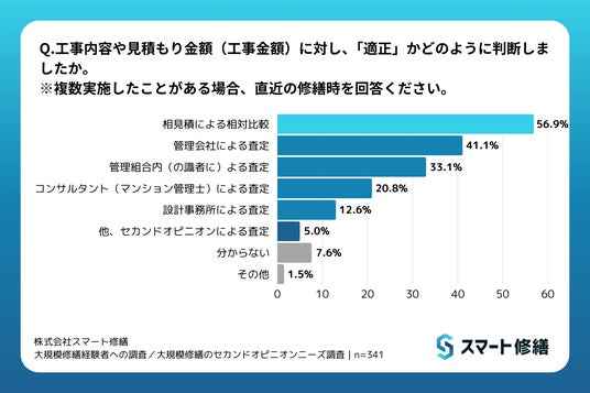 マンションやビルなど大型建物の修繕工事の見積、工事支援サービスを展開する株式会社スマート修繕(本社:東京都港区)は、マンション区分所有者であり、管理組合理事または修繕委員の就任経験のある男女を対象に、インターネットでアンケート調査を実施しました。前編の今回は、大規模修繕工事の進め方や工事費の比較・判断についての調査結果をお知らせします。