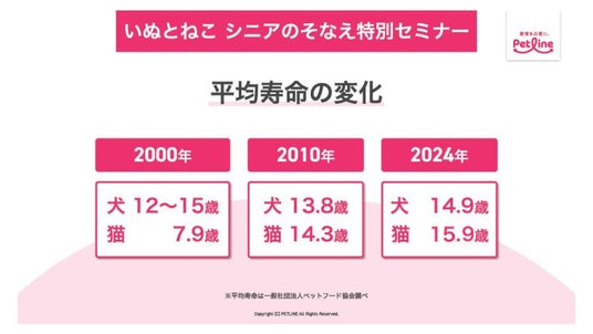 も体の中では⽼化が進んでいる場合があると説明がありました。また、7 歳以上の⽝・猫の飼い主を対