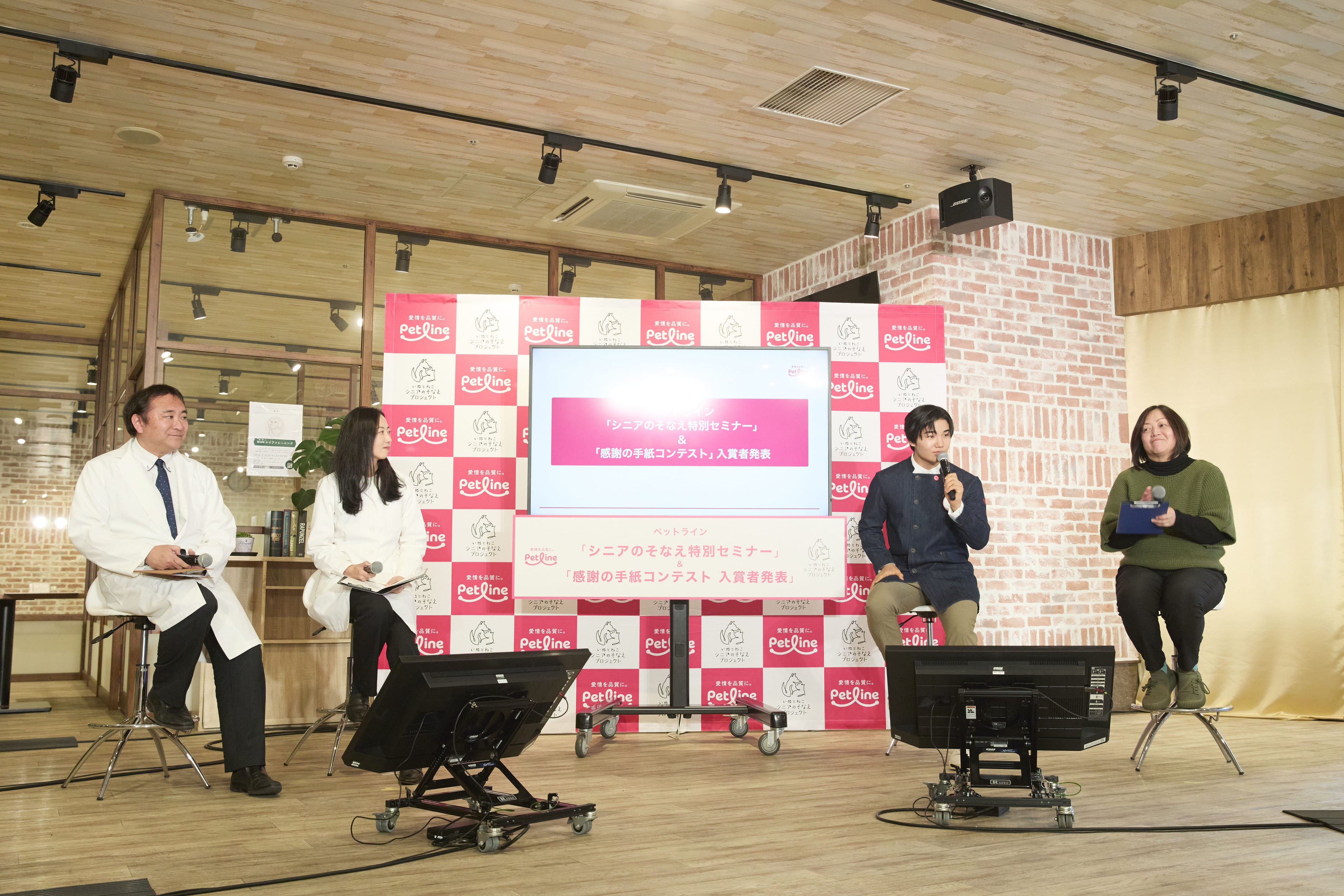 国産ペットフードメーカー ペットライン株式会社(本社:神奈川県横浜市/代表取締役社長:小沼 亮)は、「いぬとねこ シニアのそなえプロジェクト」の一環として、2026年2月11日(水・祝)に、老犬ホームを併設する『WANCOTT』(横浜)にて、ペットライン「シニアのそなえ特別セミナー」&「愛犬・愛猫へ贈る 感謝の手紙コンテスト」入賞者発表を開催しました。当日は事前応募により集まった一般の飼い主33名をご招待し、俳優の寺田心さんをゲストに迎え、獣医師や老犬ホーム関係者とともに、ペットの高齢化をテーマとしたセミナーと10月に開催した「積み重ねた時間に、愛を込めて 愛犬・愛猫へ贈る感謝の手紙コンテスト」の入賞者発表を実施いたしました。