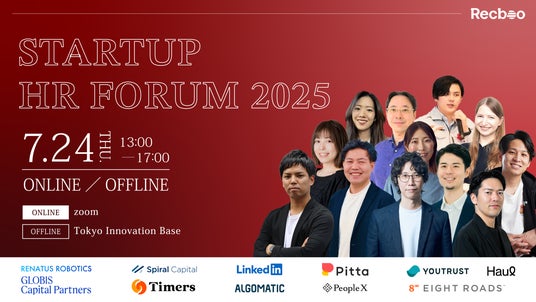 2025年7月24日、Tokyo Innovation Base(有楽町)にて開催するスタートアップHRフォーラム2025を盛り上げるスポンサー5社が続々決定!