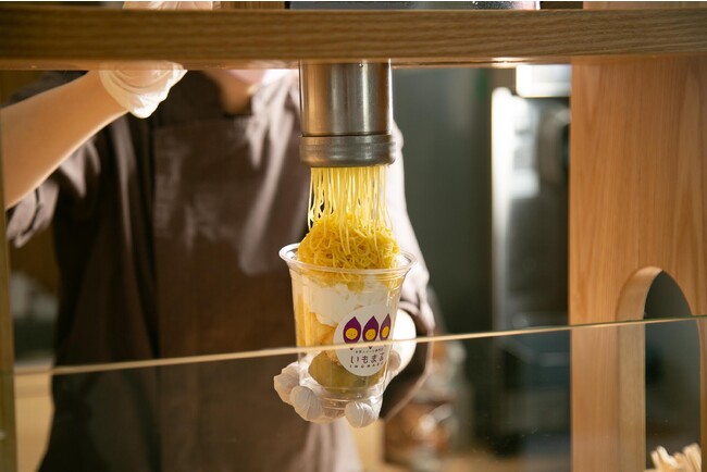 自家製焼き芋から作った極細モンブランは、なめらかな触感に、ねっとりとした甘さがたまらない逸品。