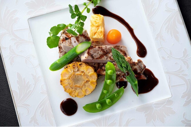 北海道SPFブランド豚“ひこま豚”や函館松前サーモン、純国産鶏の自然卵“おのたま”など、総料理長が函館の市場や農場を巡り、生産者の皆さまとふれあいながら旬の食材を厳選いたしました。