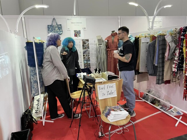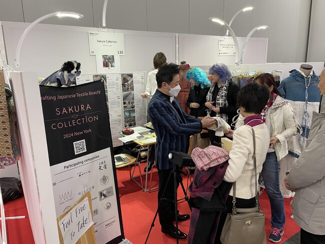 また、展示ブースの運営には、NYファッション工科大学(通称FIT)の学生達もインターンで参加しました。若いクリエイターが早くから日本の伝統素材に触れることで、将来のコラボレーションの可能性がさらに広がっていきます。