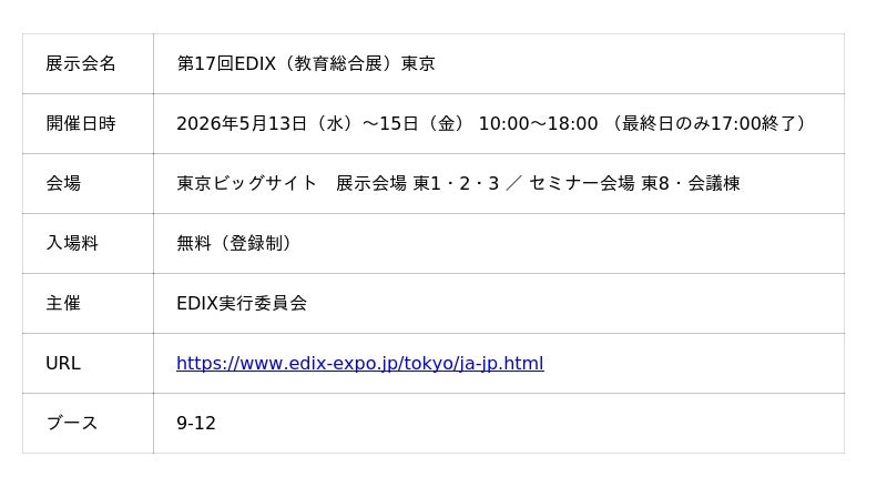 ミナトホールディングス株式会社(本社:東京都港区、代表取締役会長兼グループCEO:若山健彦、証券コード:6862、以下「ミナトホールディングス」)のグループ会社である株式会社プリンストン(本社:東京都港区、以下「プリンストン」)は、2026年5月13日(水)~15日(金)に東京ビッグサイトで開催される「第17回EDIX(教育総合展)東京」に出展いたします。