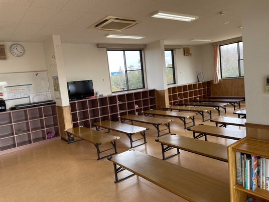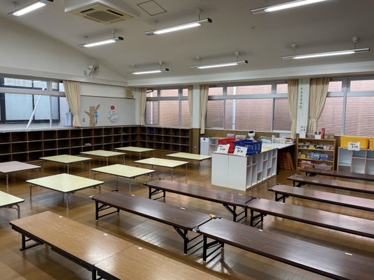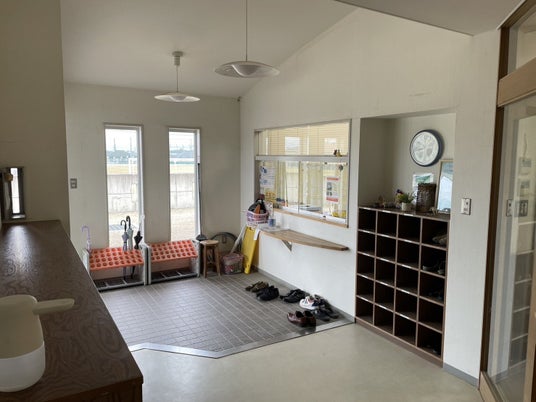 「風の丘」は利用する子どもたちが通う友生小学校の敷地内にあります。施設内は広く、保育スペースとはドアで仕切られた事務室もあります。