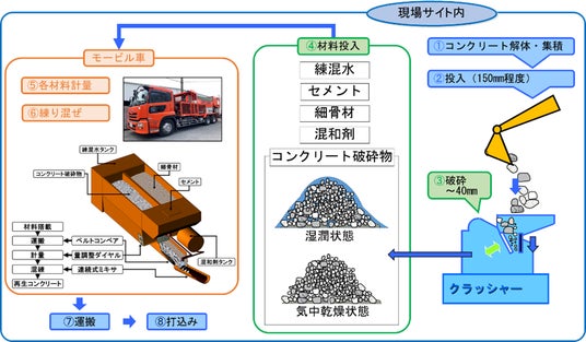 図1:モービル車によるリ・バースコンクリートの製造イメージ