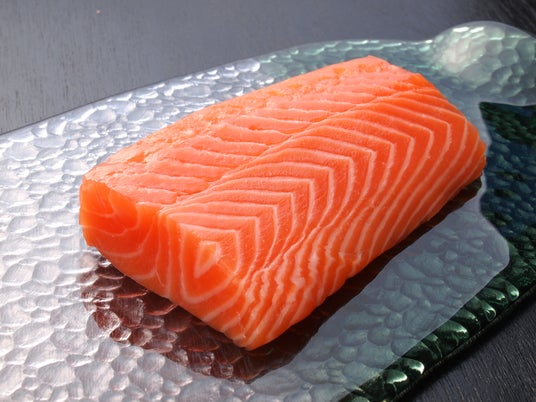 生アトランティックサーモン刺身用サク取り(100g当り):450円(税込)