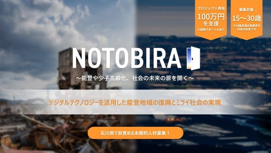 株式会社Asian Bridge(所在地:東京都港区/石川県金沢市/富山県富山市、代表取締役:小西 広恭)は、経済産業省が所管する令和5年度未踏的な地方の若手人材発掘育成支援事業補助金「AKATSUKIプロジェクト」(※1)の採択事業者として、石川県能登地域において「NOTOBIRA(ノトビラ)」プロジェクトを開始します。